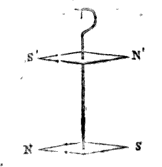 Non è più allora necessario stabilire tra questi due effetti la distinzione che è così importante fare, come vedremo fra poco, quando si tratta dell’azione mutua di una corrente elettrica e di un magnete considerato come si fa ordinariamente in rapporto al suo asse, perché, in questo tipo di azione, i due oggetti tendono a sistemarsi in direzioni perpendicolari tra loro.