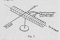 Il problema che Ampére aveva bene in mente era però quello della rotazione dell’ago magnetico di Öersted ed allora egli monta l’esperienza in modo da avere un filo rettilineo fisso ed un altro in grado di ruotare su di un piano parallelo al primo(9):