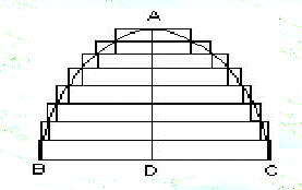 Inscrivendo successivamente nel segmento ABC triangoli nel modo suddetto, e proseguendo l’operazione un numero di volte sufficientemente grande, potremo ottenere una superficie poligonale Sn tale che