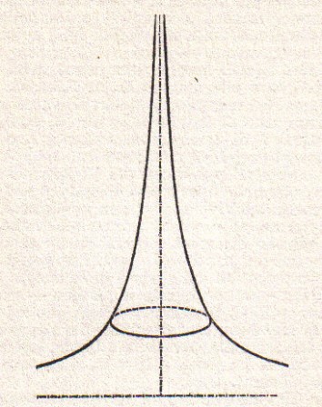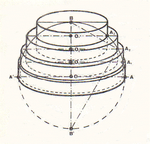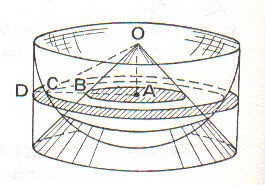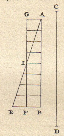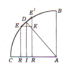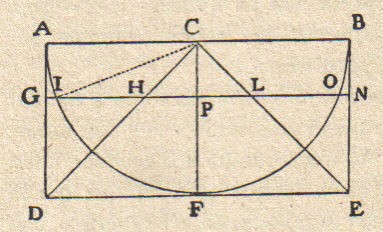 E’ uno dei pochi cenni a questi problemi di Galileo. L’altro, sempre nei Discorsi (giornata prima) è relativo a problemi di aree e di volumi che egli esegue con il metodo degli indivisibili (vedi oltre). Egli, in relazione al calcolo del volume della scodella (un cilindro al quale è sottratta una semisfera, solido mostrato in sezione nella figura), prima dimostra che, sezionando il solido con un piano qualunque parallelo alla base, la corona circolare ed il cerchio che si ottengono sono equivalenti, quindi dimostra che il cono di sezione DEC ha