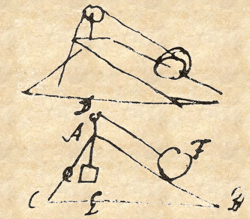 “Ma né le obiezioni del Confalonieri, né quelle del Cavalieri sortirono l’effetto di incrinare la fiducia dello scienziato nella proporzionalità tra momenti e velocità, o nel suo diretto corollario, la proposizione XI, che stabilisce l’inversa proporzionalità tra la ‘velocità’ dei gravi lungo l’obliqua e la perpendicolare di un piano inclinato e le linee stesse.