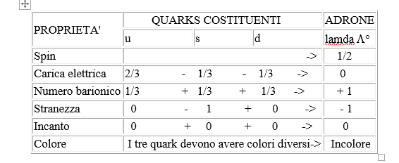 Per quel che riguarda la stranezza, il fatto che negli esempi considerati risulti sempre zero è solo perché non abbiamo considerato particelle strane. Se considerassimo una di queste particelle, ad esempio la L° riportata in tabella 1, troveremmo: