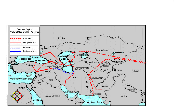 I giganti petroliferi anglo-americani, tra cui BP-Amoco-Arco, Texaco e Chevron – sostenuti dalla potenza militare statunitense – sono in competizione con il gigante petrolifero europeo Total-Fina-Elf (associati con l’italiana Eni), che è un importante attore nei ricchi giacimenti di Kashagan nella regione del Caspio nord-orientale in Kazakistan.