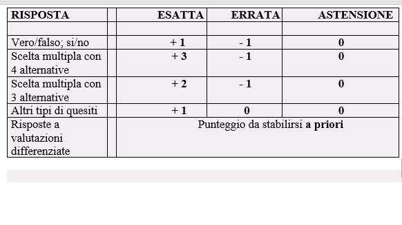 - in sede di correzione si penalizza, rispetto al non rispondere, la risposta errata