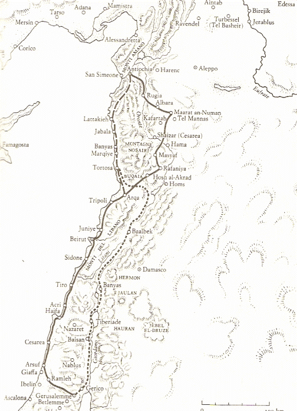 Riporto un brano che avevo scritto alla fine del penultimo paragrafo e relativo a Saladino che, dopo aver conquistato Gerusalemme, dilagava per tutta la Palestina: