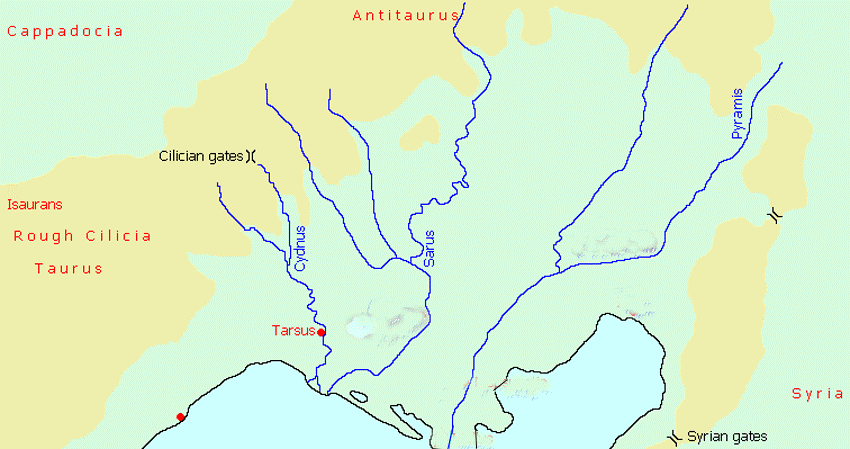 Nella cartina, in alto a destra, è riportata Niksar (o Neocaesarea) ed in basso al centro Miriocefale