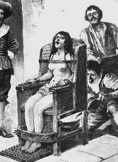 Le sedie dell’inquisizione Si trattava di sedie munite di pungiglioni ed aculei, cosparsi sullo schienale, sui poggiabraccia, sui poggiapiedi. Risulta semplice comprendere quale fosse l’effetto sulla vittima seduta su queste poltrone; in un’alternativa, come in figura, erano presenti delle stecche di legno, o di cuoio, che venivano strette per permettere agli speroni di affogare e di penetrare la carne fino a raggiungere l’osso. Le sedie erano costruite in ferro, e non di rado venivano prima surriscaldate, procurando alla vittima un dolore mostruoso. Questa metodologia di tortura fu utilizzata dall’Inquisizione fino al 1700 in Spagna, in Italia e fino al 1800 in Germania. http://itnetbsd.altervista.org/gizm0/torture/23.html