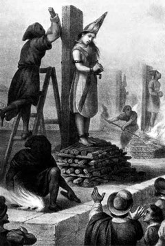 Vari strumenti di tortura. Il primo a sinistra in basso è lo stivale. Lo stivale era considerata dai testimoni dell’epoca la tortura più violenta e crudele al mondo, così spaventosa che quando qualcuno doveva essere infilato nello stivale, tutti i membri del Consiglio che lo ordinava chiedevano di andarsene. Consisteva in un contenitore di ferro a forma di stivale progettato per racchiudere l’arto nudo, dal piede al ginocchio; tra la gamba e lo strumento venivano inseriti con un martello dei cunei di legno o di metallo. La carne veniva così lacerata e spesso le ossa si schiantavano, frantumandosi in modo spaventoso e disgustoso, mentre il castigo proseguiva finché la vittima confessava. Era inoltre raro che chi sperimentava questa tortura non rimanesse storpio a vita.