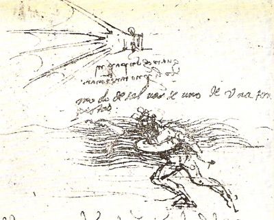 (15) Relativamente a suoi studi sulla possibilità di avere uomini che lavorassero sott’acqua con una specie di tuta da palombari, Leonardo scrisse: