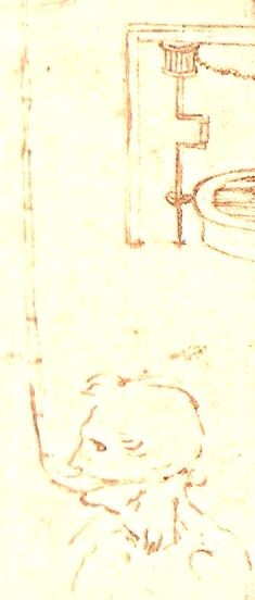 Altro sistema per respirare sott’acqua. Il recipiente in alto è la riserva d’aria. (Codice Arundel)