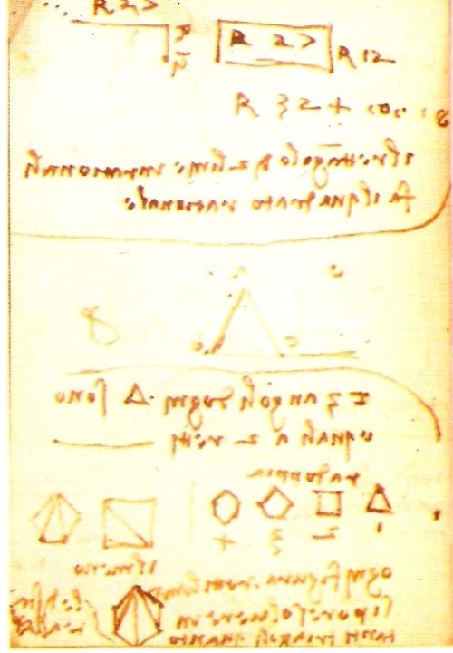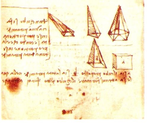 Leonardo studia geometria. E’ molto importante notare che Leonardo affronta tali studi tra il 1496 ed il 1504 quando era un cinquantenne, con tutte le difficoltà di chi ha questa età per apprendere lingue e matematica.