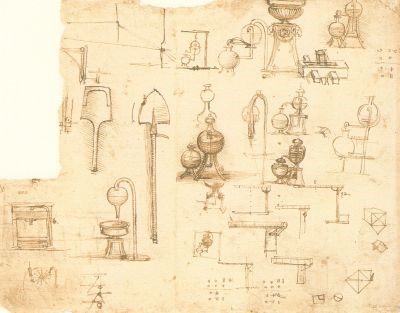 Da tempo Leonardo non ci appare più isolato, ma si è riusciti a inquadrarlo come il più rilevante esponente di un ambiente in cui da tempo si condividevano gli stessi interessi, si guardavano gli stessi libri e si realizzavano disegni analoghi. Molti degli interessi tecnologici di Leonardo erano stati condivisi, nella prima metà del secolo XV, da Mariano Taccola, molto interessato, in particolare, alle opere di pneumatica e tecnologia militare di Filone di Bisanzio. Alla stessa epoca risale quella che probabilmente è la prima traduzione di un’opera scientifica in una lingua europea moderna: la traduzione italiana della Pneumatica di Filone di Bisanzio contenuta nella prima parte del manoscritto anonimo Macchine idrauliche, di guerra, etc. Alla seconda metà del secolo risale il Trattato di architettura, ingegneria e arte militare di Francesco di Giorgio Martini, nel quale si possono vedere disegni di ruote idrauliche alimentate da condotte forzate, pompe aspiranti e prementi, viti senza fine, meccanismi a cremagliera, molti altri elementi della tecnologia ellenistica e anche un carro dotato di sterzo.