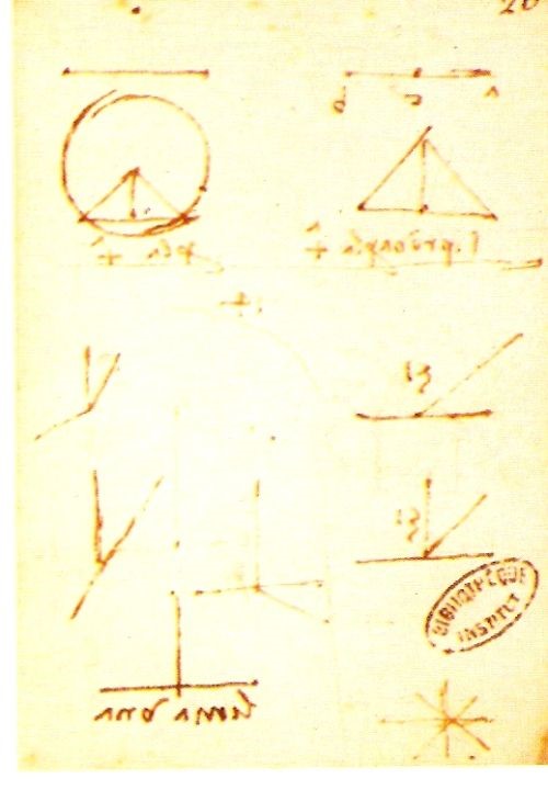 Leonardo studia i due teoremi di Euclide ed il teorema di Pitagora (Manoscritto K, Institut de France, Parigi)