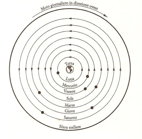 La fisica di Aristotele è un tutt’uno con la cosmologia di Aristotele. Sono due entità inseparabili e per questo quella cosmologia fu accettata insieme a quella fisica, perché era un impianto possente e non messo insieme a casaccio. Chiunque pensasse di toccare una maglia di questa tela deve sapere che si trova in grave difficoltà perché è l’intera tela che viene giù e, tanto per esemplificare, vediamo come facilmente si smontano le spiegazioni che dava Copernico al moto della Terra intorno al Sole.