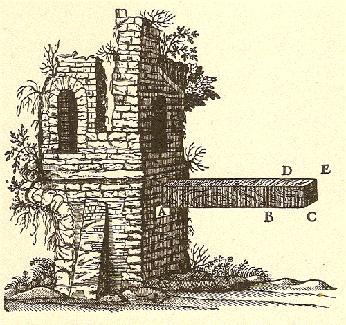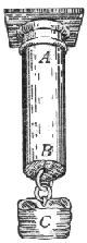 […] Per più chiara esplicazione di che, segniamo il cilindro o prisma AB di legno o di altra materia solida e coerente, fermato di sopra in A e pendente a piombo, al quale nell’altra estremità B sia attaccato il peso C: è manifesto che, qualunque si sia la tenacità e coerenza tra di loro delle parti di esso solido, pur che non sia infinita, potrà esser superata dalla forza del traente peso C, la cui gravità pongo che possa accrescersi quanto ne piace, e esso solido finalmente si strapperà, a guisa d’una corda. E sì come nella corda noi intendiamo, la sua resistenza derivare dalla moltitudine delle fila della canapa che la compongono, così nel legno si scorgono le sue fibre e filamenti distesi per lungo, che lo rendono grandemente più resistente allo strappamento che non sarebbe qualsivoglia canapo della medesima grossezza: ma nel cilindro di pietra o di metallo la coerenza (che ancora par maggiore) delle sue parti depende da altro glutine che da filamenti o fibre; e pure essi ancora da valido tiramento vengono spezzati.