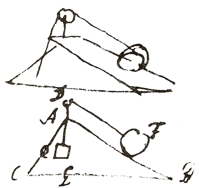 “Ma né le obiezioni del Confalonieri, né quelle del Cavalieri sortirono l’effetto di incrinare la fiducia dello scienziato nella proporzionalità tra momenti e velocità, o nel suo diretto corollario, la proposizione XI, che stabilisce l’inversa proporzionalità tra la ‘velocità’ dei gravi lungo l’obliqua e la perpendicolare di un piano inclinato e le linee stesse.