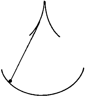 Schema di pendolo cicloide con due profili ad arco di cicloide nel punto di sospensione del pendolo medesimo