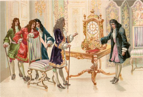 Huygens presenta a Luigi XIV il suo orologio a pendolo