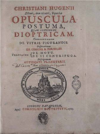 ricerca del centro di tale oscillazione, con lo studio gravitazionale connesso e con l’insorgere di una forza centrifuga (vis centrifuga), sulla quale, fin dal 1659, egli aveva scritto un trattato, De vi centrifuga, pubblicato postumo, come accennato, negli Opuscula Postuma del 1703.