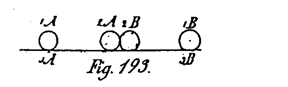 Ponantur enim dari, itaque poterunt dari duo tales globi, iique concurrentes, ut in prop. praecedenti. Sed ita (fig. 193) globus in loco 2A positus a conatu pergendi in directione, ut 1A2A, transibit ad conatum contrarium 2A3A, idque momento, quod est absurdum. Omnis enim mutatio fit per intermedia. Itaque in tali concursu cedere in partibus suis seu flecti corpora necesse est, ut paulatim deveniant ad quietem, et deinde Elastro se restituente motum contrarium priori recipiunt per gradus. Idem sic quoque ostenditur, quod necesse est in corporibus concurrentibus aliquando mutari velocitates, idque fieret in momento concursus, si corpora essent perfecte rigida. Sed nulla potest esse in Natura mutatio momentanea assignabilis sive notabilis, et proinde ab uno velocitatis gradu ad alium nisi per intermedios transiri non potest.