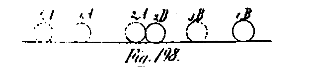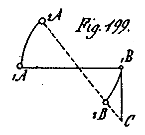 Haec propositio ut ad sequentes quasdam demonstrandas adhiberi potest, ita vicissim demonstrari potest ex sequentibus, quippe quae et aliunde demonstrantur, ut apparebit in primis ad prop. 20. Hinc si corpus captum ab alio ex motu rectilineo in gyrum se vertere cogatur, arbitror revera pergere in recta linea, licet vi adhaesionis, quam a motu quodam derivo, ad centrum repellatur. Suspicor autem, Naturam arcanis quibusdam modis omnes suos conatus etiam particulares conservare et ad exitum perducere. Certe in concursu corporum aequalium contingit (quemadmodum infra ostendemus), ut celeritates absolutas ac directiones permutent inter se. Inde si certo tempore (fig. 198) A et B pervenerit ex 1A1B in 2A2B, et aequali tempore a concursu 2A2B perveniant in 3A3B fiet ut omnia perinde eveniant, ac si sine ullo concursu unumquodque suam viam fuisset prosecutum; loco enim ipsius A, quod semoto concursu pervenisset nunc in locum 3B, jam eo pervenit B, et loco ipsius B, quod semoto concursu pervenisset nunc in locum 3A, jam eo pervenit A. Cumque sibi sint aequalia, patet Naturam scopum suum aequipollenter obtinuisse. Et quemadmodum videmus Naturam in sono propagando res elasticas trementes secare per se in partes aequales, quod scilicet ea ratione melius consentiunt vibrationes; ita fieri potest, ut sponte Naturae ita fiant concursus, quasi corpora inaequalia ex pluribus partibus aequalibus componerentur. Hinc etiam cum omnes conatus quodammodo exitum habere arbitrer, si (fig. 199) corpora A, B radii cujusdam extremitatibus affixa circa medium velut centrum ferantur atque ita recedere ab eo conentur, arbitror revera recedere et tendere ab B ad C, sed impulsu contrario corporum insensibilium rursus versus centrum repelli a C ad 2B, neque aliam esse causam adhaesionis, ut mox amplius patebit.