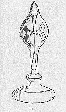Nel 1874 viene pubblicato un interessante lavoro di W. Crookes, Attrazione e repulsione risultanti dalla radiazione (16), a cui seguiranno svariati altri. Crookes afferma di essere riuscito a mostrare l’esistenza della pressione di radiazione con un apparato, il radiometro, da lui costruito (17) (Fig. 2). Si tratta si questo: delle palette molto leggere, una faccia delle quali è stata annerita mentre