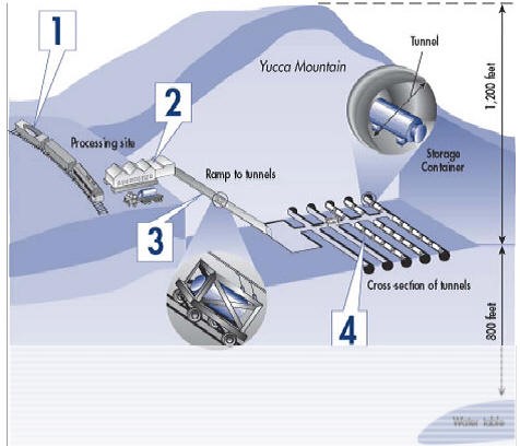 Il trasporto al deposito di Yucca Mountain delle scorie sparse in ogni angolo del paese rappresenta inoltre uno degli aspetti più