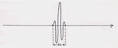 Queste onde, come si vede dalla figura, originano un pacchetto ben localizzato (l’onda, somma delle quattro, rappresentata tratteggiata nella figura precedente e riportata separatamente nella figura seguente):