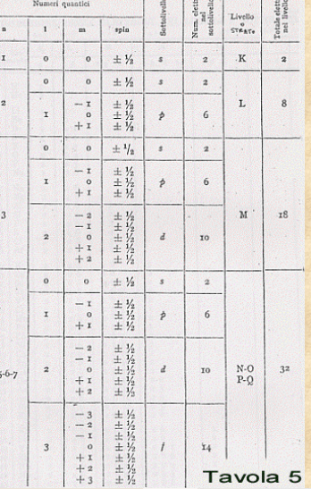 Per maggior chiarezza riportiamo nella tabella seguente gli stati quantici successivi degli elettroni che entrano a far parte di un atomo (tavola 4):