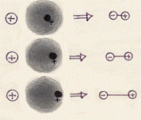 Consideriamo questo atomo discentrato. Esso avrà la sua carica positiva situata, preferentemente, dalla parte opposta della sua carica negativa. Questo atomo potrà essere rappresentato come un dipolo