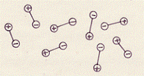 In media non vi dovrebbe essere, dunque, attrazione. Comunque non c’è nessuna orientazione privilegiata, e quindi nessuna attrazione, solo quando la temperatura è infinitamente grande. In pratica, cioè a temperature finite ed ordinarie, tra le molecole si avrà una situazione di attrazione, cioè le molecole tenderanno ad orientarsi in modo tale che l’interazione tra i dipoli origini una attrazione. Avremo così attrazione tra le molecole, ma questa attrazione diminuirà con l’aumentare della temperatura fino a che, a temperatura infinitamente grande, non esisterà più.