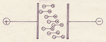 Possiamo vedere dalla figura che i dipoli, sotto l’azione di un campo elettrico, si orientano, in quanto la loro estremità positiva viene attratta dal polo negativo e viceversa.