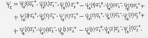 ψ– = ψI – ψII = ψ(1,2) – ψ(2,1) = ψA(1)ψB(2) – ψA(2)ψB(1)