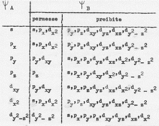 E’ bene precisare meglio il punto 3 riportando una tavola in cui sono elencate le combinazioni permesse e proibite da ragioni di simmetria, per alcuni orbitali che si incontrano più frequentemente: gli s, p, d (si veda la Tavola 5).