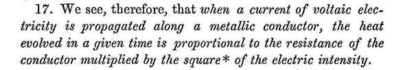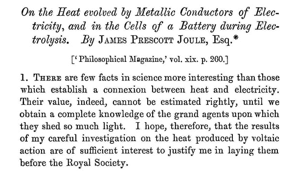 Sempre del 1840 è il suo primo lavoro di grande rilievo. Si tratta della memoria On the Production of Heat by Voltaic Electricity, pubblicata sui Proceedings of the Royal Society, December 17, 1840.