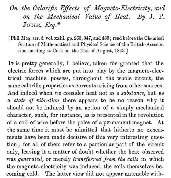 Iniziamo con leggere alcuni brani della lettera al Philosophical Magazine. Scrive Joule che: