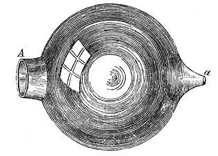 Anche con i lavori di acustica, che portò avanti ancora durante i 14 anni che passò ad Heidelberg, egli operò in modo da oggettivare i fenomeni e riportarli, nell’ambito del possibile, a spiegazioni fisiche. Come fece per l’ottica realizzò uno strumento per l’analisi dei suoni, il risonatore(6). Si tratta di varie sfere cave di differenti dimensioni (vedi figura), ognuna tarata ad una data frequenza, che basano il loro funzionamento su banali principi di acustica.