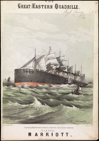 Il libretto di una polka, tra le tante, composta in occosaione della posa del cavo transatlantico. Nel disegno è riportata la HMS Agamennon e la USS Niagara ed il tracciato lungo il quale depositare il cavo.