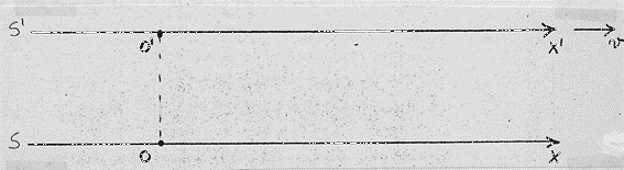 (920) Quanto scritto non è casuale. Non possiamo infatti dire t =t’ ≠ 0 poiché non sappiamo nulla sui tempi t e t’ ed in particolare nulla sappiamo sul loro essere o meno uguali. Si ricordi che il criterio di sincronizzazione valeva per un dato riferimento e non per il passaggio da un riferimento ad un altro.