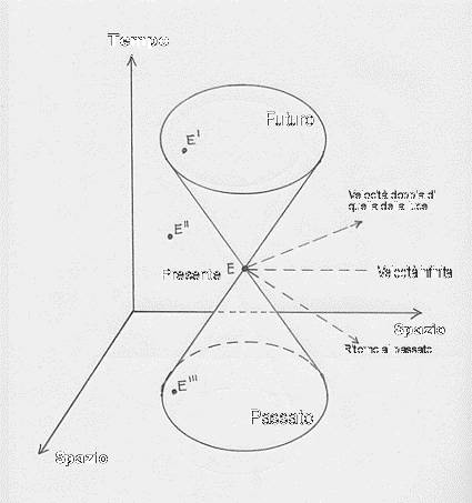 rispettivamente rispetto all’asse dello spazio e tutto il nostro possibile passato si trova dentro il triangolo tratteggiato (mentre E rappresenta sempre l’unico possibile presente.