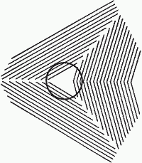 Gli otto segmenti obliqui tracciati sono perfettamente paralleli, eppure quei trattini disegnati in quel modo “rompono” il nostro modo di interpretare e noi non vediamo parallelismi. Analogamente nelle figure seguenti, si tratta sempre di rette parallele che per differenti “disturbi” non lo sembrano.