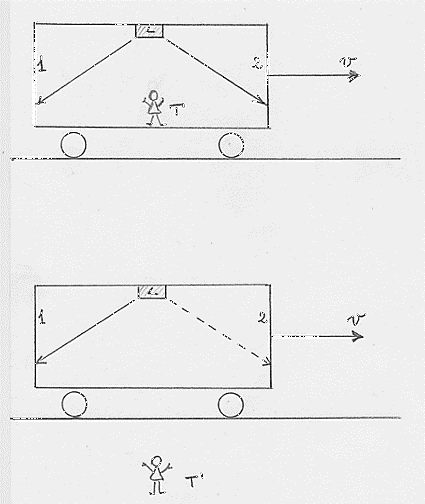 oggetto emetta un lampo di luce verso destra ed un altro verso sinistra.. La luce emessa da E sarà rappresentata da due
