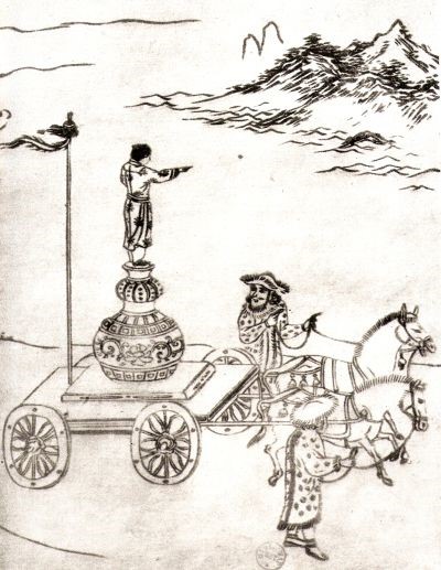 Carro cinese del sud con la statuina che può ruotare indicando il Sud