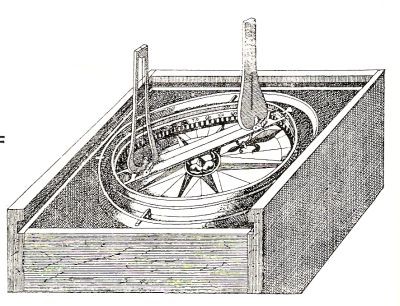 All’interno della coppa devono essere fissate delle liste di ferro e dei denti di ugual peso, che siano posti in direzione obliqua sull’orlo della coppa, uno dopo l’altro, in modo che la loro distanza non sia maggiore dello spessore di un fagiuolo o di un pisello. La ruota stessa deve avere ugual peso in ogni sua parte.