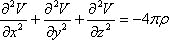 dove V(x,y,z), in analogia con il caso gravitazionale, rappresenta la somma di tutte le cariche del sistema esterno, divise ciascuna per la distanza da quel punto ed ognuna diversa per la sua distanza dal punto in cui la laplaciana si calcola. L’equazione non è più omogenea (cioè eguagliata a zero), come Laplace aveva trovato per il caso gravitazionale, ma dipende dalla densità r della carica elettrica presente nel punto preso in considerazione. Nella stessa memoria Poisson richiamava l’attenzione sul fatto che V è una funzione utile nelle ricerche elettriche e che il suo valore sulla superficie dei conduttori deve essere costante.