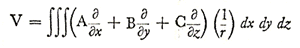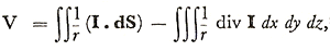 con l’integrale esteso all’intero magnete e dove il vettore I = (Ax,By,Cz) rappresenta il momento magnetico per unità di volume o, come è usualmente chiamato, la magnetizzazione. Per parte sua la funzione V era stata chiamata da Green potenziale magnetico.