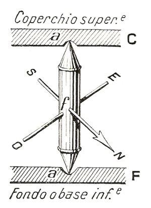 A Pierre de Maricourt è dovuta anche la descrizione di una diversa sospensione dell’ago magnetico nella bussola, così come mostrato in figura: