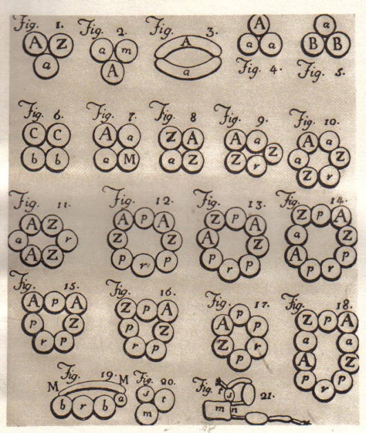 Varie sistemazioni in catene di conduttori realizzate da Volta e riportate in una sua Lettera al Professore Gren di Halla (1° agosto 1796)