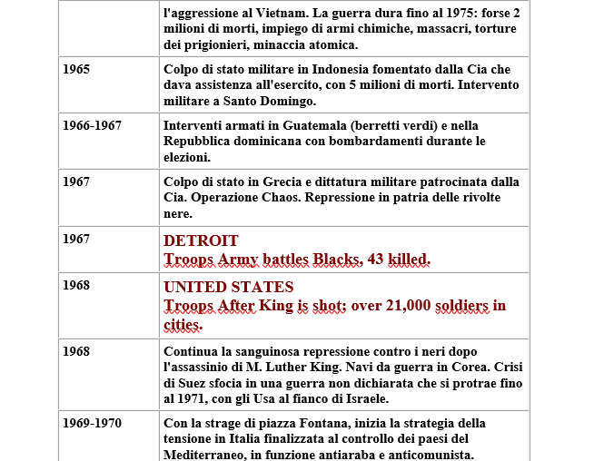 Ecco altri significativi esempi di ‘liberta”, ‘democrazia’ ecc. americana successivi alla fine del conflitto mondiale.