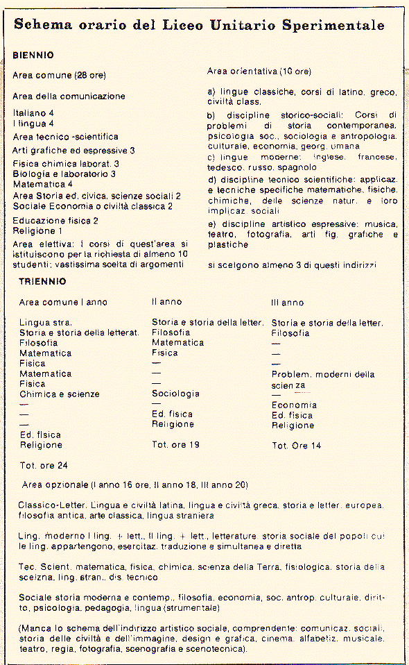 nuove metodologie didattiche e di gestione, con lo scopo di ottenere anche una maggiore crescita sociale e politica dei partecipanti. Coerentemente con la volontà politica di chi ha decretato la sperimentazione, la vita del L.U.S. (liceo unitario sperimentale, Bufalotta) è stata parecchio movimentata. Nasce in una sede provvisoria a Via Livenza, in quattro aule prestate da una scuola magistrale; nel 72 si trasferisce in una palazzina inadatta ad ospitare una scuola, in Via Panzini (Montesacro alto). Nel 73 si apre la sezione distaccata a Via India (Villaggio Olimpico) in 5 aule prestate dal Liceo Lucrezio Caro.